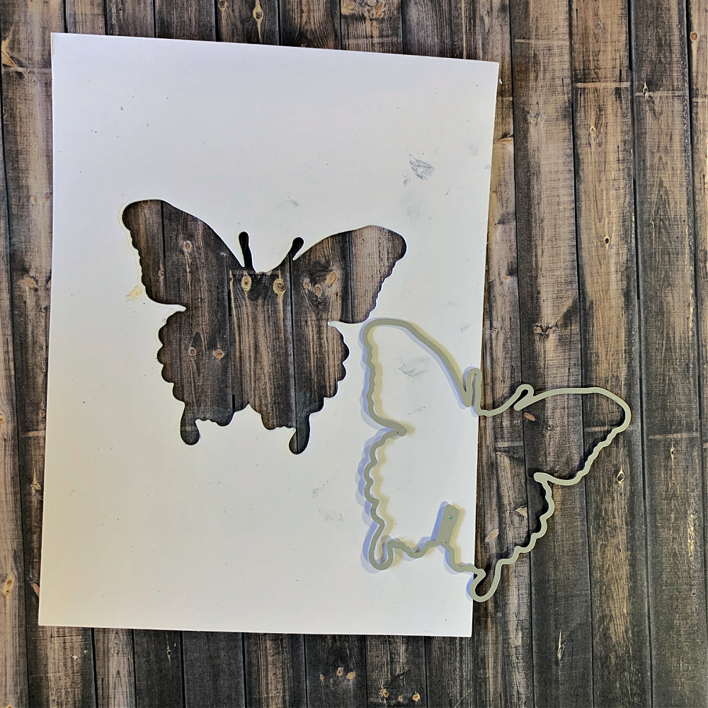 Begin by cutting out the butterfly in the Perspective 213SSS die set out of a scrap piece of cardstock.