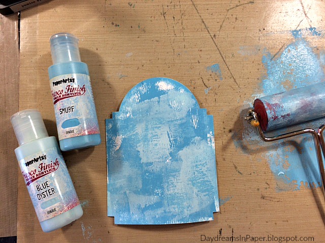 Now that the first layer is completely dry, I roll on some Paper Artsy Blue Oyster Fresco Finish Paint using the same brayer technique as the first layer. Allow this to completely dry.