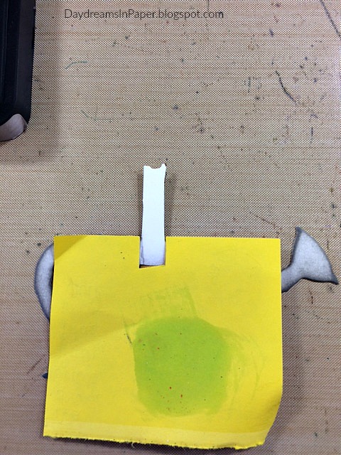 I then created a little masking piece with a post-it note and cut out a small space at the top for the handle of the watering can so I could ink it a darker color.