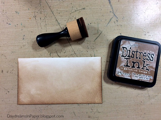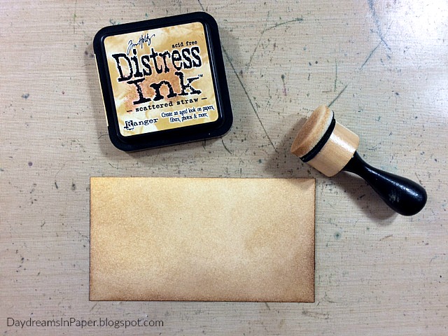 I go over the entire piece with Scattered Straw Distress Ink and set that aside to dry.