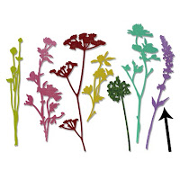 I use one of the flowers (see photo below) from the Tim Holtz Wildflower Thinlits die set and use that as a stem: