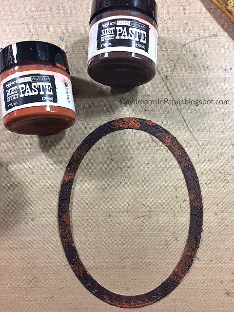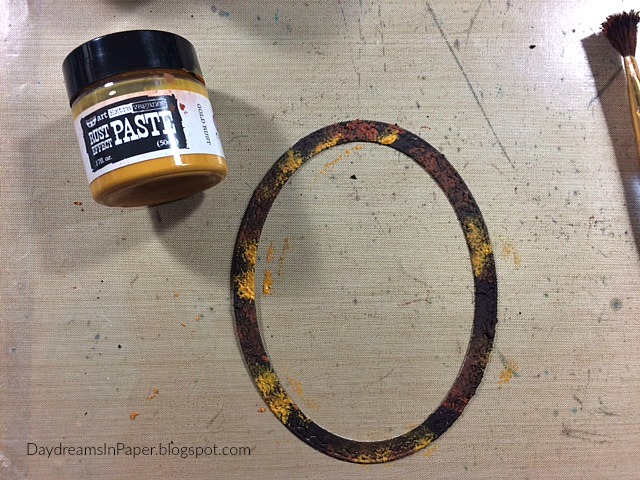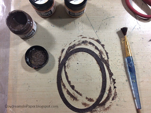 To apply the Rust Effect Paste to the frame, I start with the darkest brown color. I dab it on with a paint brush until the piece is completely covered. (There is no need to dry the paste between layers.)