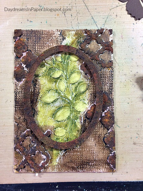 To get the rusty hardware look, I use Prima Rust Effects Paste on the trellis pieces. See below on how to apply the Rust Effects Paste.