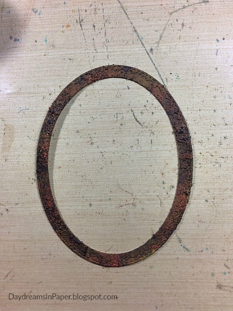 To create the window frame for the panel, I cut out the Tim Holtz Stitched Ovals as shown above.