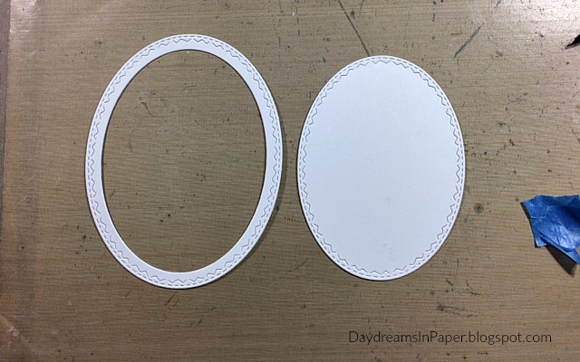 Here you can see what I have left over after cutting two ovals inside each other. I will save the one on the right for a future project and use the one on the left for this project.