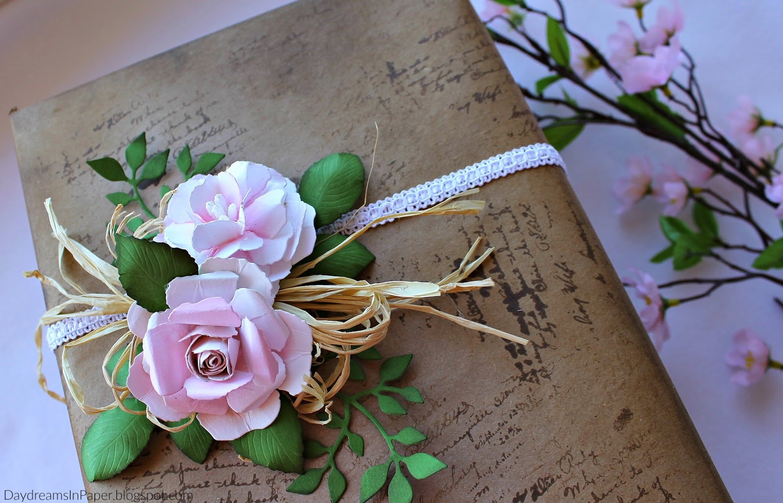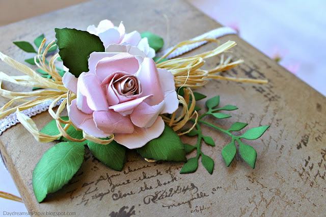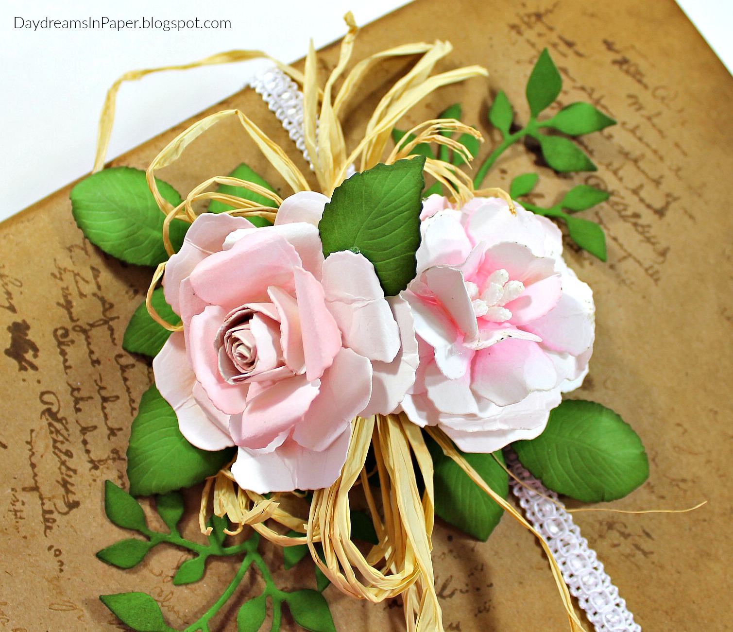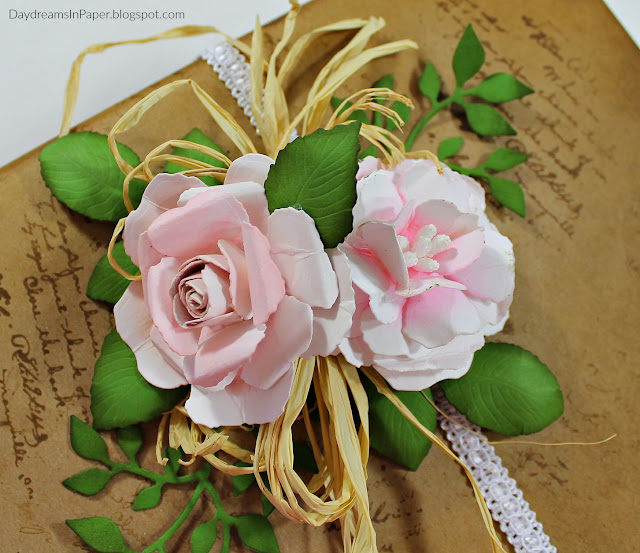 For the rose, I cut out the petals and ink the centers with Spun Sugar Distress Ink. You can find my tutorial for creating these roses here.