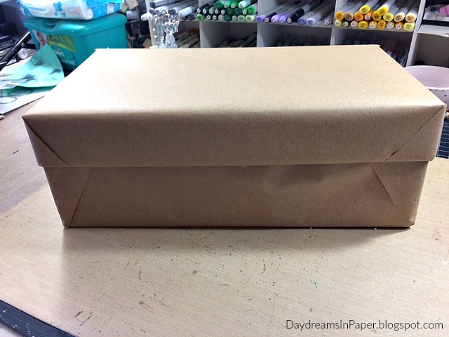 I chose a large, sturdy shoe box and covered it with craft butcher paper. You can find small rolls of this online for a reasonable price and it comes in white too.