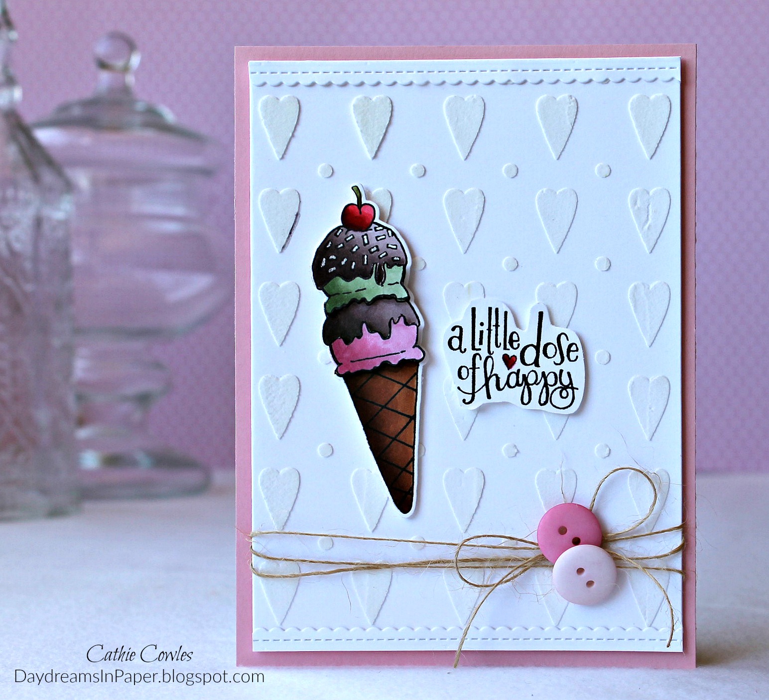 Step 6: Adhere ice cream cone and sentiment onto the embossed card panel.