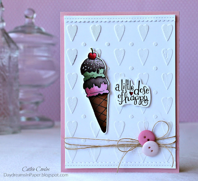 Hi Friends! I’m here today with some inspiration for Tammy Tutterow Designs. I can’t tell you how much fun her new stamps are to play with. Her new Tiny Sentiments stamp set can be mixed and matched with so many stamps you already have on hand or you can pair them up with other sets of Tammy’s designs. The sentiment set comes with 11 different sayings and designs. Here, I used Tammy’s Ice Cream Cone stamp and die set and paired it with one the Tiny Sentiments stamps.