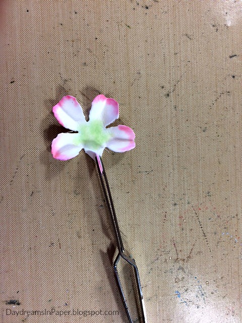 While the petals are still damp, pinch each petal with tweezers or your fingertips and set aside to completely dry.