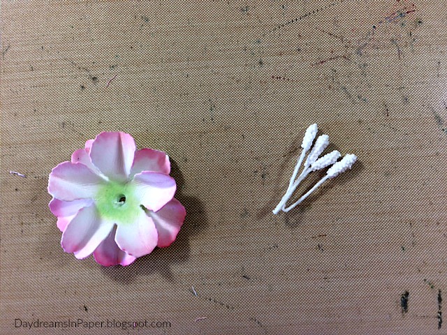 Push the set of stamens through the top set of petals and then the second set of petals.