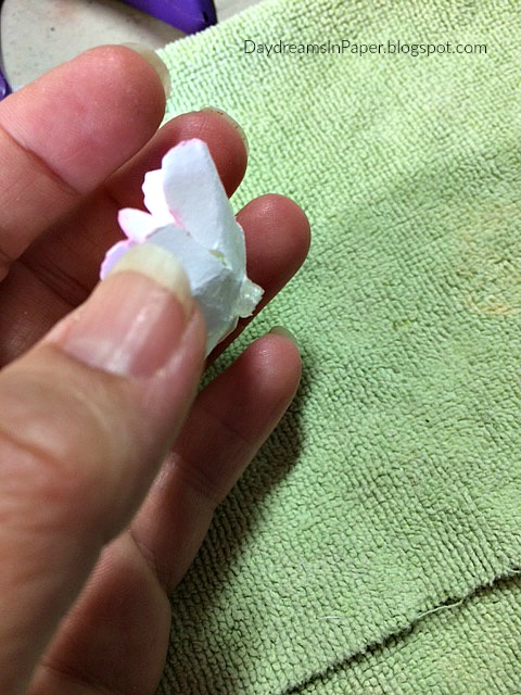Next place the petal on a clean towel and dab off the excess water.