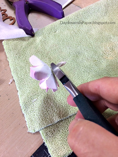 Now that the petals are dry, punch a 1/8″ hole in the center.