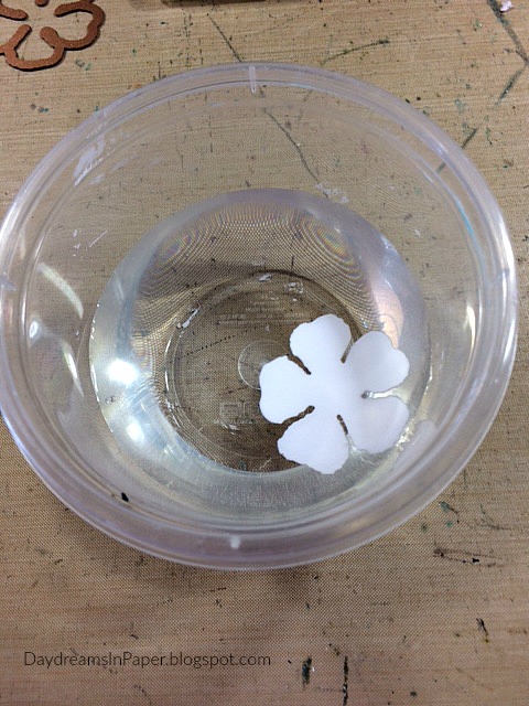 The first step in creating the small flowers is to place one petal in water for about 15 seconds.