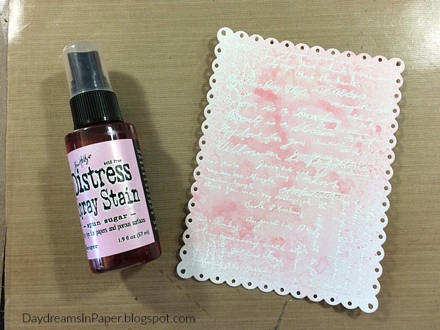 Now that the image is cool, spray panel with Spun Sugar Distress Spray Stain. Set this aside to completely dry.